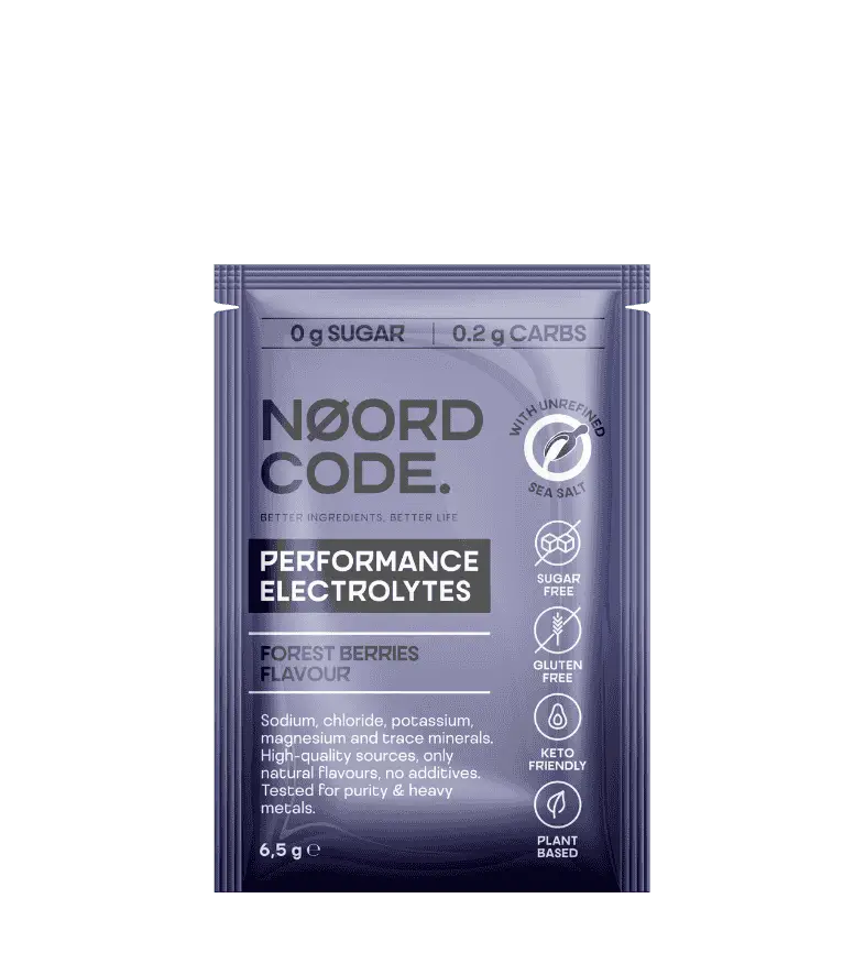 NoordCode Performance Electrolytes Forest Berries is designed to replenish sodium and chloride. These are the electrolytes most lost through sweat and urine. Sodium and chloride together form salt (sodium chloride). They can therefore be easily replenished through salt.